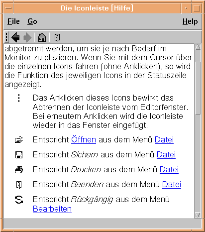 The second screenshot shows a help window. It also has ist own toolbar. The